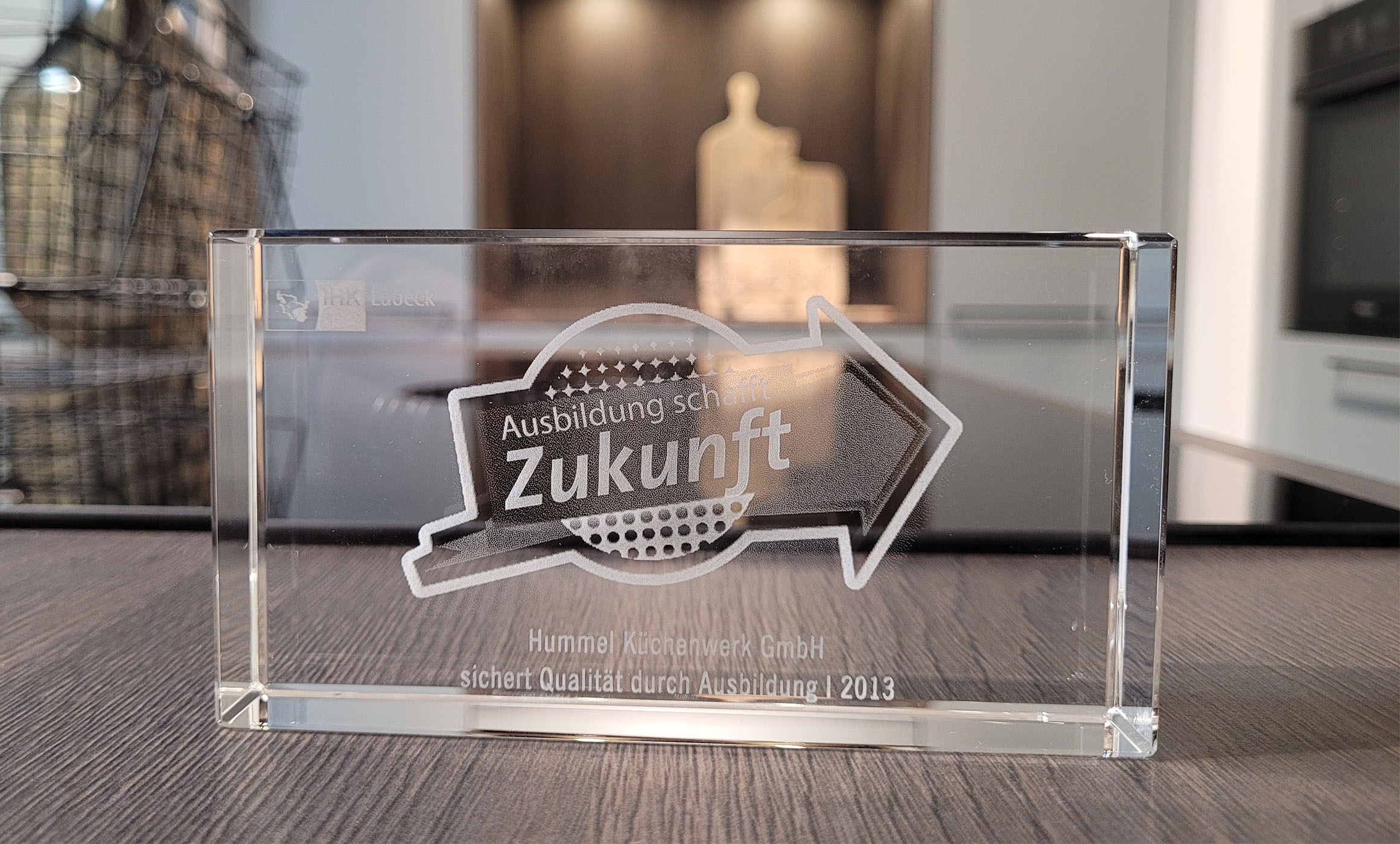 Auf diese Auszeichnung sind wir sehr stolz: IHK Ausbildungs-Award 2013 für hervorragende Leistung der Förderung des Nachwuchses im Hummel Küchenwerk.